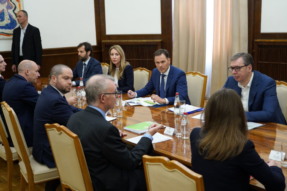 Predsednik Srbije Aleksandar Vučić razgovarao je danas sa predstavnicima Misije Međunarodnog monetarnog fonda u Srbiji o kapitalnim ulaganjima i finansiranju projekata u okviru investicionih planova u vezi sa sveobuhvatnim programom rasta „Skok u budućnost – Srbija 2027“. Tema sastanka sa predstavnicima MMF-a, koje je predvodio šef misije u Srbiji Donal Mekgetigen, bila je i jačanje energetskog sektora, a predsednik Vučić je izrazio očekivanje da u narednim godinama taj sektor postane jedan od ključnih generatora ubrzanog napretka Srbije. Time bi se, prema rečima predsednika Vučića, obezbedila energetska stabilnost zemlje i postavio temelj za snažan razvoj strateške infrastrukture, saopšteno je iz Predsedništva Srbije. Predstavnici MMF-a su istakli da se ekonomski rast Srbije nastavlja, dok se inflacija smanjuje, kao i da su rezerve na rekordno visokom nivou, što govori u prilog jakim makroekonomskim pokazateljima i otpornosti srpske ekonomije. Oni su dodali da je prisustvo stranih direktnih investicija veliko, te da su one jake, različite i otporne. Za to su, prema rečima predstavnika MMF-a, zaslužne čvrsta makroekonomska politika, makroekonomska stabilnost i izuzetan geografski položaj Srbije. Predsednik Vučić je istakao da je za Srbiju od najvećeg značaja da nastavi sa trendom snažnog privlačenja stranih direktnih investicija, dok se uporedo radi na podizanju pokazatelja ekonomske stabilnosti, reformama u sistemu javnih finansija, ali i širenju državnog portfolija u oblastima investiranja kao što su napredne tehnologije i veštačka inteligencija, zelene energije i digitalizacija.